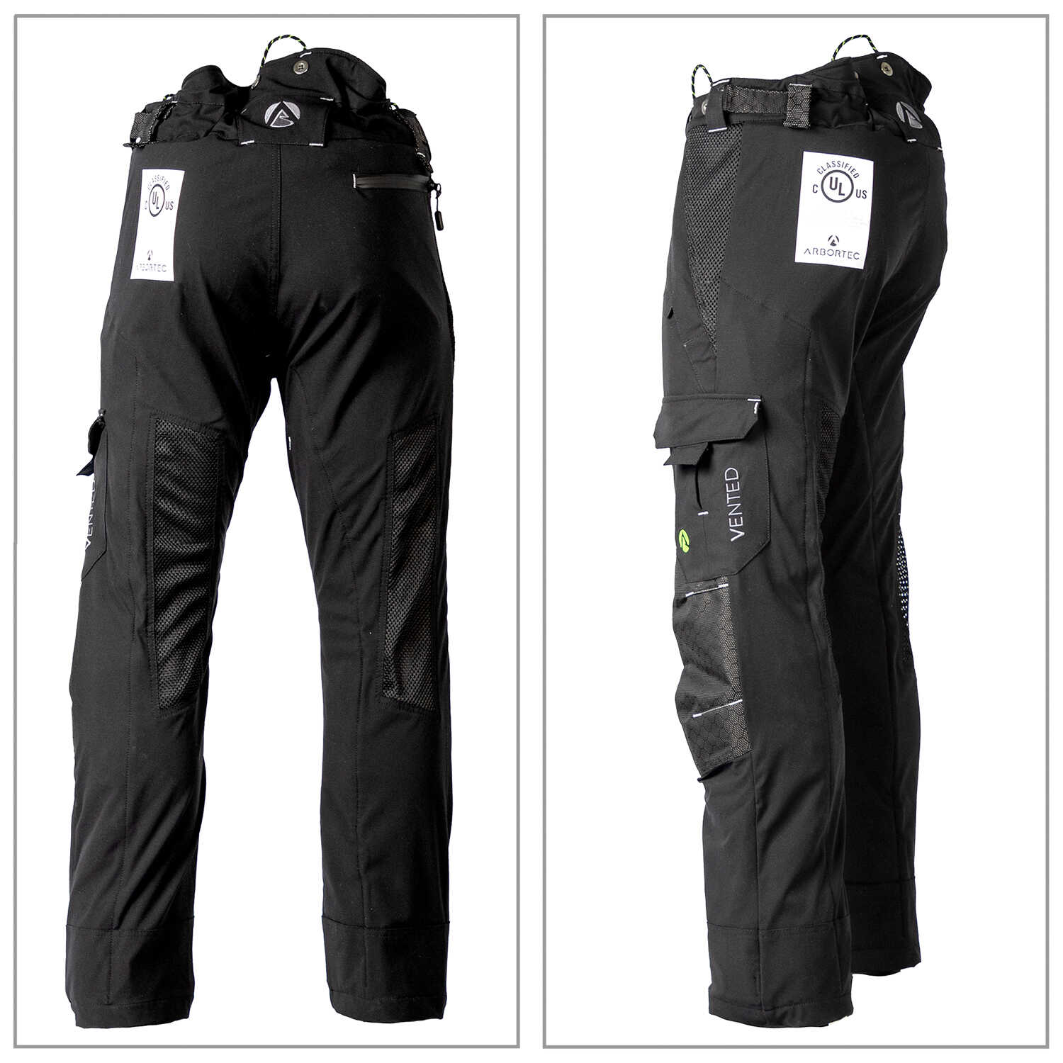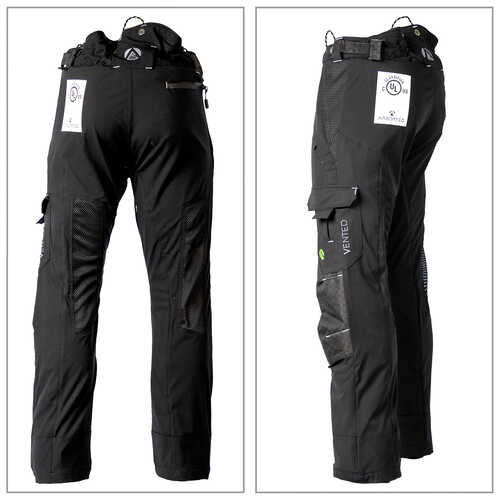 Combining excellent breathability and comfort, these chain saw trousers feature four large ventilation panels that are strategically placed on the front and back to maximize airflow and keep you cool. Kevlar knee reinforcement provides extra abrasion resistance, and reinforced seams in high-stress areas ensure added strength. Storage includes a cargo pocket, front pockets, and a back pocket. Downward-facing zippers on the pockets allow for easy access to contents when you're wearing a climbing harness. An adjustable waistband with a high back delivers extra coverage and a comfortable, tailored fit. Elasticated hooks at the bottom of the trousers allow for attachment to boot laces to keep out debris. Conforms to ASTM F1897-20 (2020).