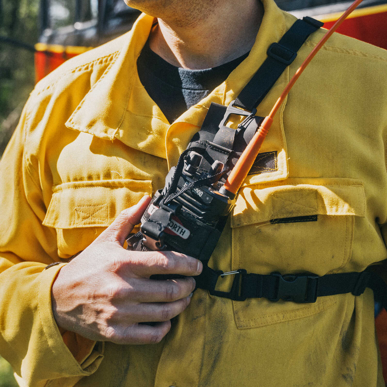 Keeps you cool thanks to the small size! Converts from a chest harness to a belt harness or it attaches to your pack's shoulder harness. Adjustable radio pocket fits a wide range of models from larger legacy radios to smaller, modern handsets. Belt loops fit belts up to 1-3/4”. 1” MOLLE attach. Constructed of 1000D Cordura® with nylon webbing; removable back harness constructed from lightweight Hypalon™. One size fits all. Meets NFPA 1977, 2005 Edition.