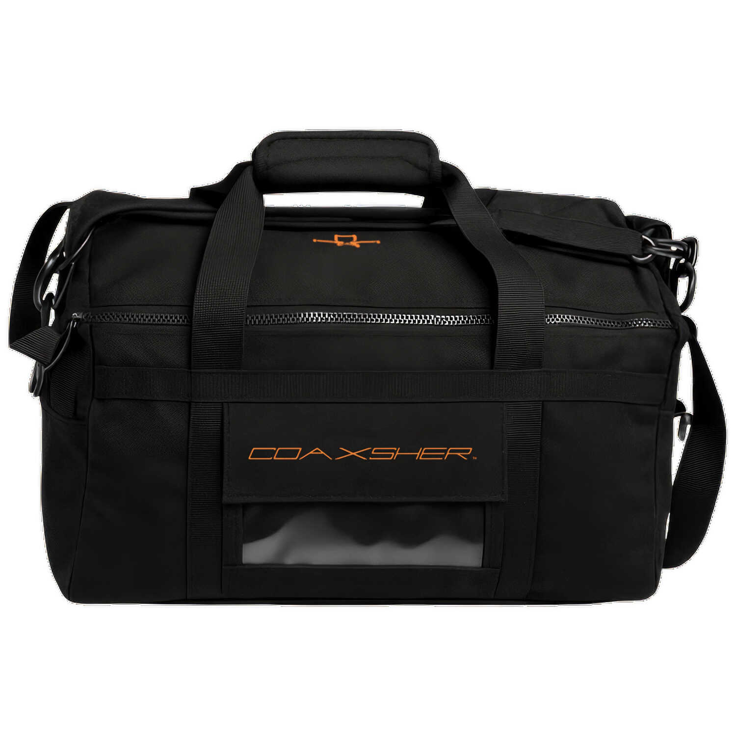 This mid-size bag features a wide top opening with double zippers that provide single-pull access for easy packing and unpacking. The main lid features a magnetic Fidlock buckle, ensuring quick release and attachment. Pockets include two internal zippered mesh storage compartments, an external side pocket that includes a clear vinyl window, and an external end pocket with a D-ring for keys. Constructed from durable, weather-resistant materials, the bag also features reinforced handles, an adjustable padded shoulder strap, and a semi-rigid, removable bottom.