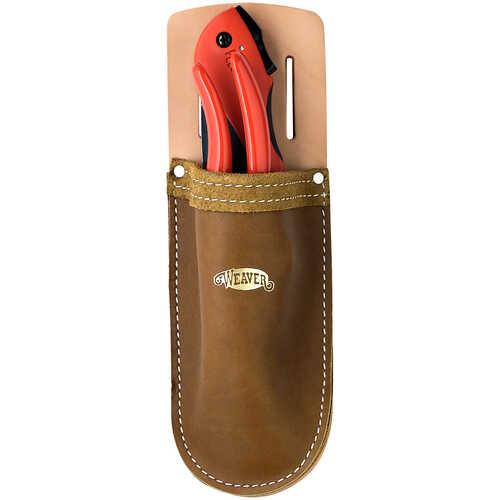 This top grain steer hide leather pouch features a pliable, 3-1/4” x 7” soft brown oil tanned front and a 12-1/4” back. Use the 2” clip on the back for quick attachment to a belt or the 2” slots to slide the belt through instead. The pouch is lockstitched and riveted for superior strength and features nickel plated hardware. Accommodates saws measuring 7” to 10” (folded length).