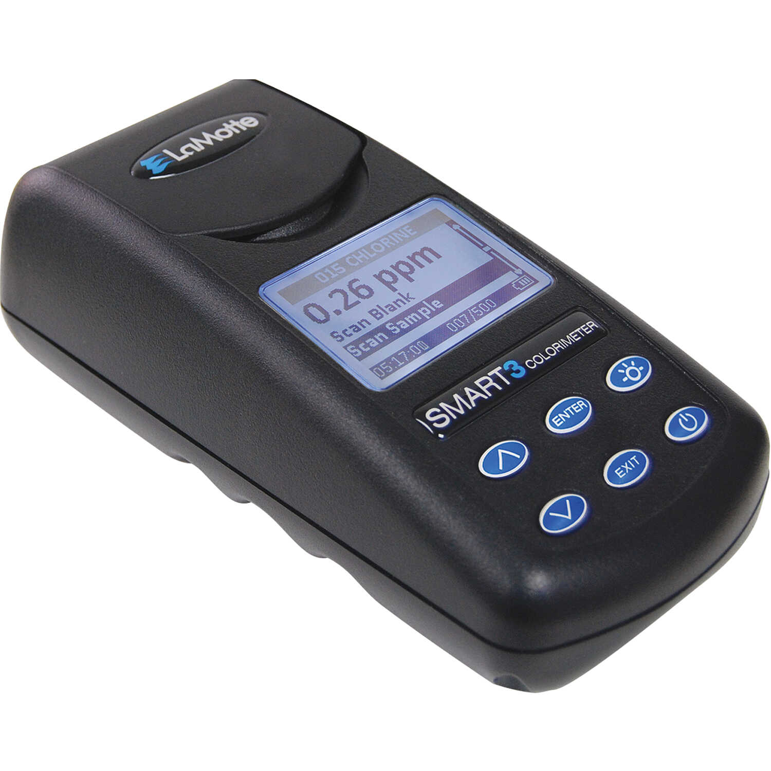 This microprocessor-based, compact colorimeter automatically selects proper wavelengths for performing a variety of water tests. A menu-driven display guides you step-by-step through testing procedures and then displays the results. The multi-LED optical system is embedded in the colorimeter’s light chamber and is optimized for use with LaMotte test reagents. Just select the test and then insert the sample with reagent. You can even enter up to 25 tests for analysis of custom reagent systems. Features include a USB port to interface with your PC, a six-button mechanical switch keypad, a self-diagnostics system, a power-saving automatic shut-off function, and factory-set calibration. Six sample tubes, USB cable, USB wall plug, and instruction manual included. Waterproof to IP67.