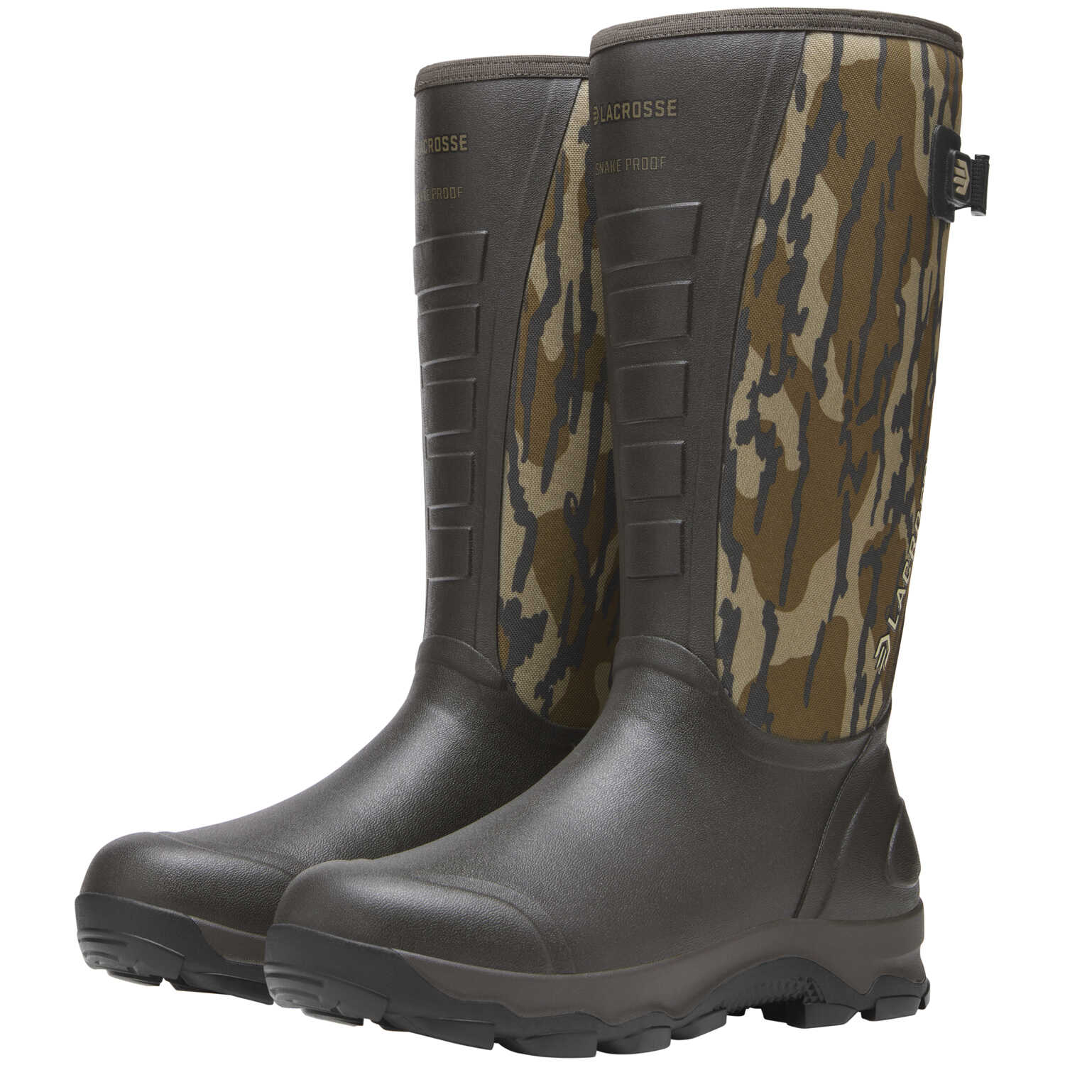 Built with flexible Snake Guard material between the liner and exterior, this boot offers 360-degree snake protection. Alpha construction combines hand-laid premium rubber over a neoprene core for waterproof durability. Quad-Core® technology incorporates four layers of cushioning and support for all-day comfort, and an Active Fit design keeps the foot securely in place. The 4xBurly outsole features a 90-degree heel and angled lugs that effectively shed mud. The quick-drying, moisture-wicking jersey knit liner keeps feet dry, and a kick-off heel plate allows for hands-free boot removal.